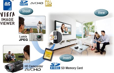 VIERA Image Viewer VIERA Image Viewer makes it easy to watch full-HD images by using the SD card slot. It lets you enjoy high-resolution, full-HD photos and videos with superb image quality and vivid colors on VIERA's large screen. Simply insert an SD card into the SD card slot to show your photos and full-HD videos on the large screen!